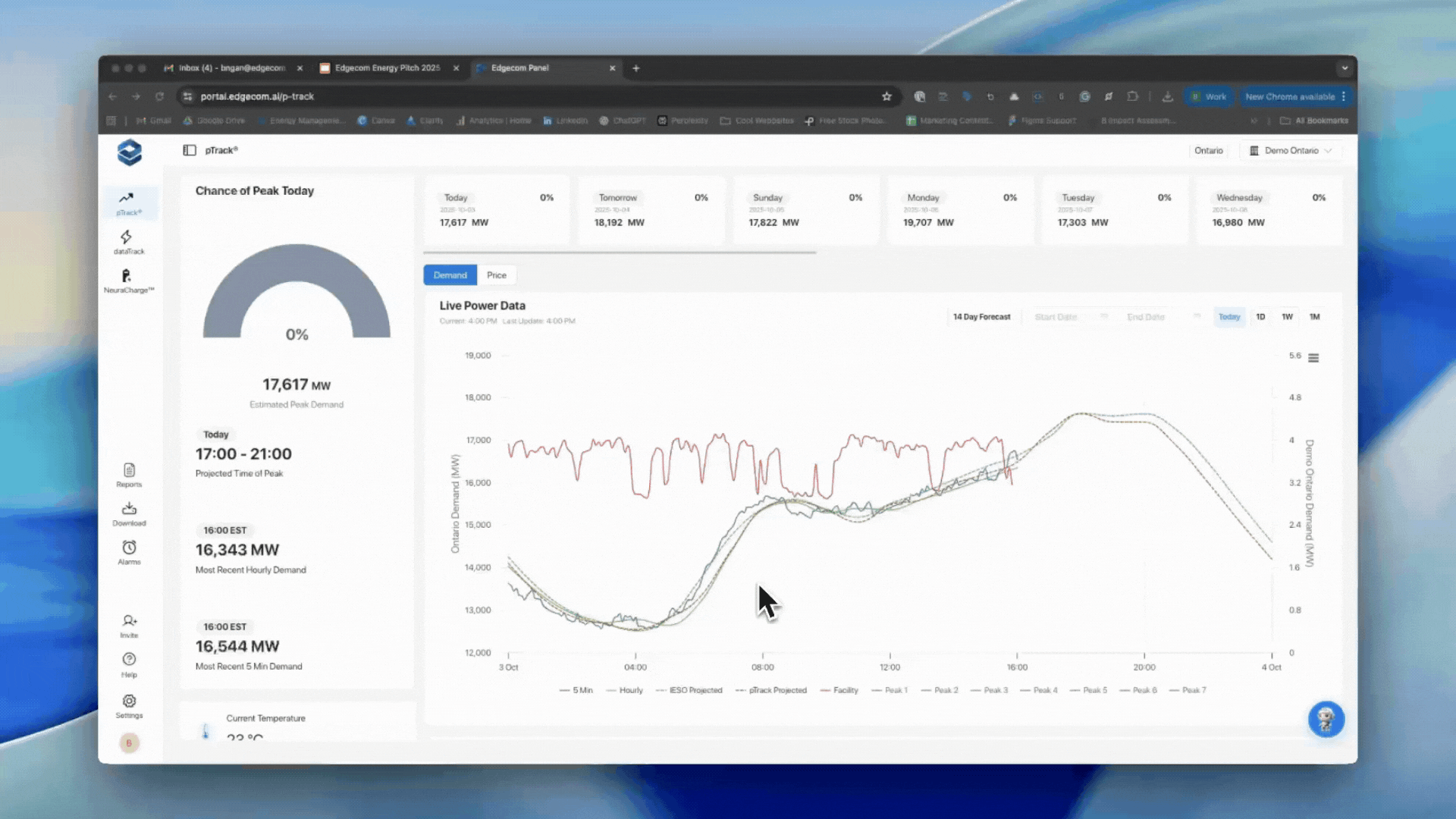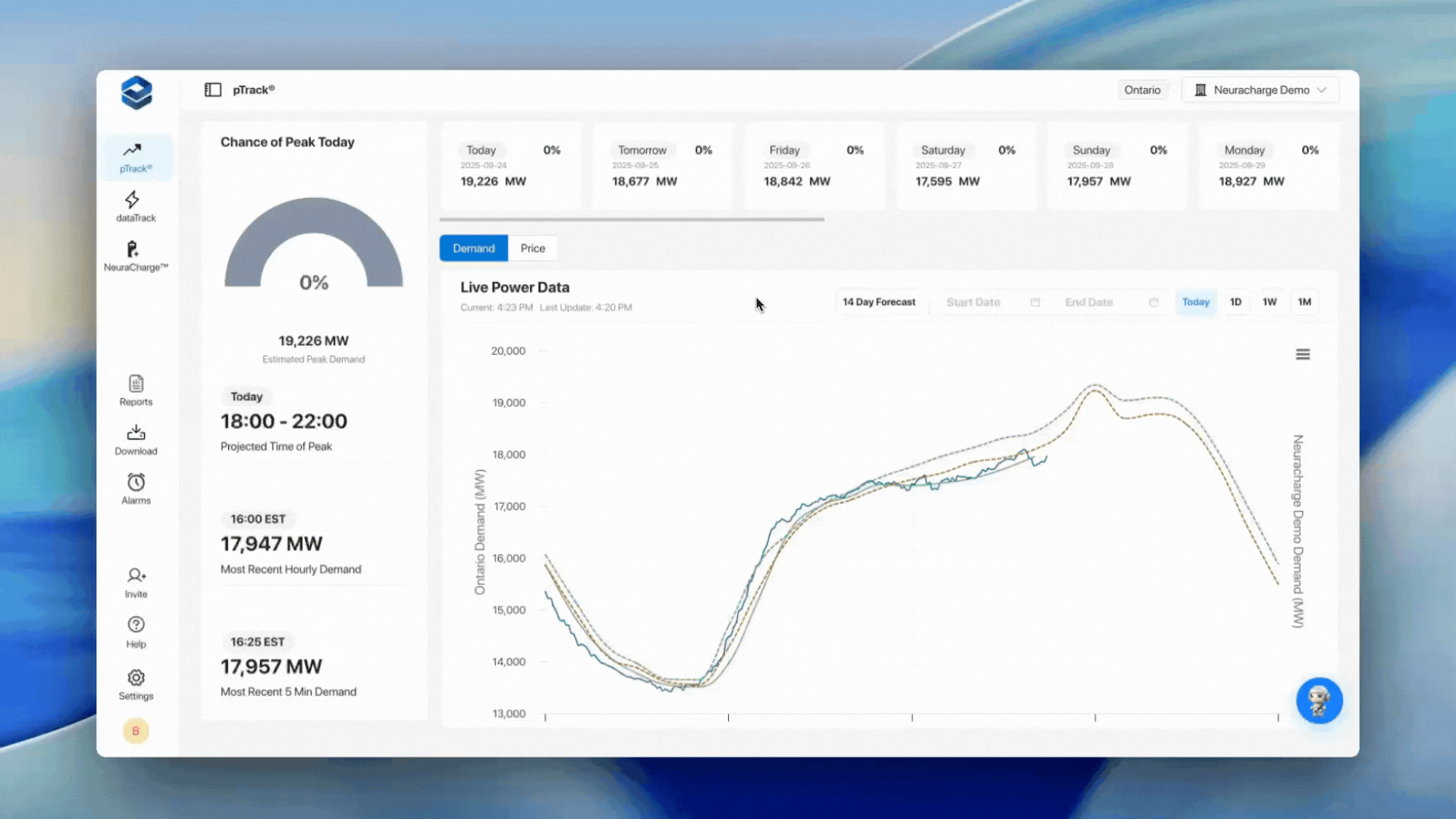 Ontario and Alberta demand estimation now extends 14 days from the previous 12-day outlook. Easily track the forecast hourly for the next 14 days and check which hour has the highest possibility of a coincident peak in the upcoming days.
